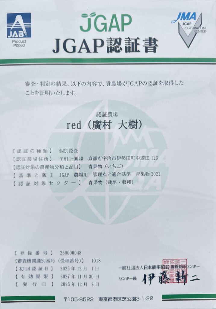 Japan Good Agricultural Practiceの略で、「日本の良い農業の実践」を意味し、 食の安全・環境保全・労働安全・人権福祉など、持続可能な農場経営のための管理基準と認証制度です。 農林水産省が推奨する「農業生産工程管理(GAP)」の一種で、第三者機関が審査し、基準を満たした農場や団体に認証が与えられ、消費者に安心と信頼を提供します。